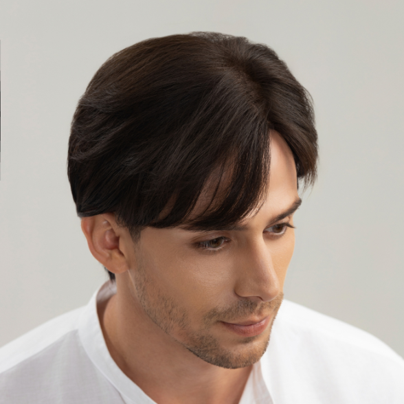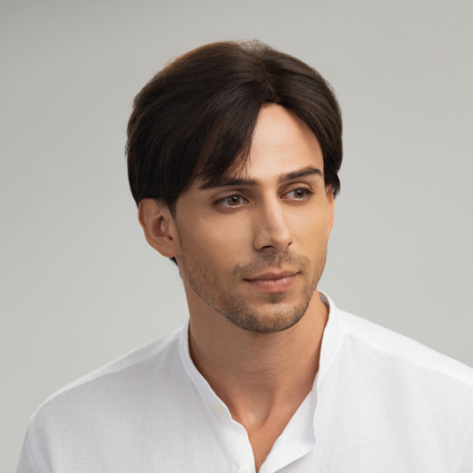 | Wigs Name | Men’s Full Wig – 7/3 Side Part, Slicked Down Style, Dark Brown |