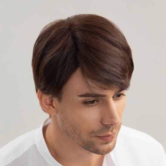 | Wigs Name | Men’s Full Wig – Side Part with Side-Swept Bangs, Chocolate Brown |