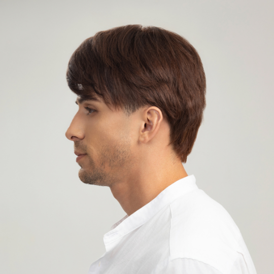 108027. Men’s Full Wig – Side Part with Side-Swept Bangs, Chocolate Brown