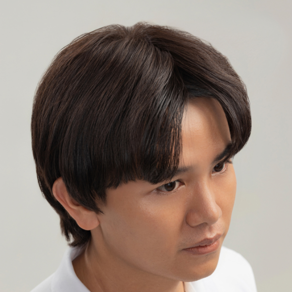 | Wigs Name | Men’s Full Wig – Side Part with Two Bangs, Dark Brown |