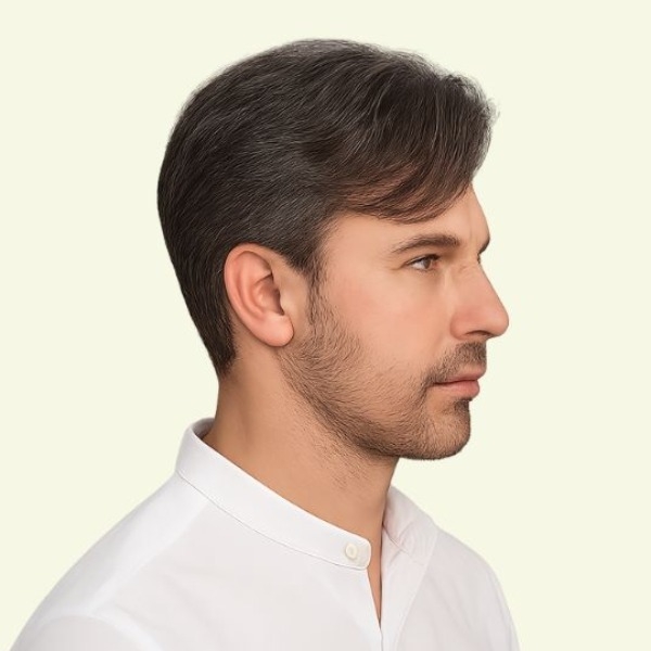 | Wigs Name | Men’s Hair System – Side-Swept Bangs Style, Human Hair |