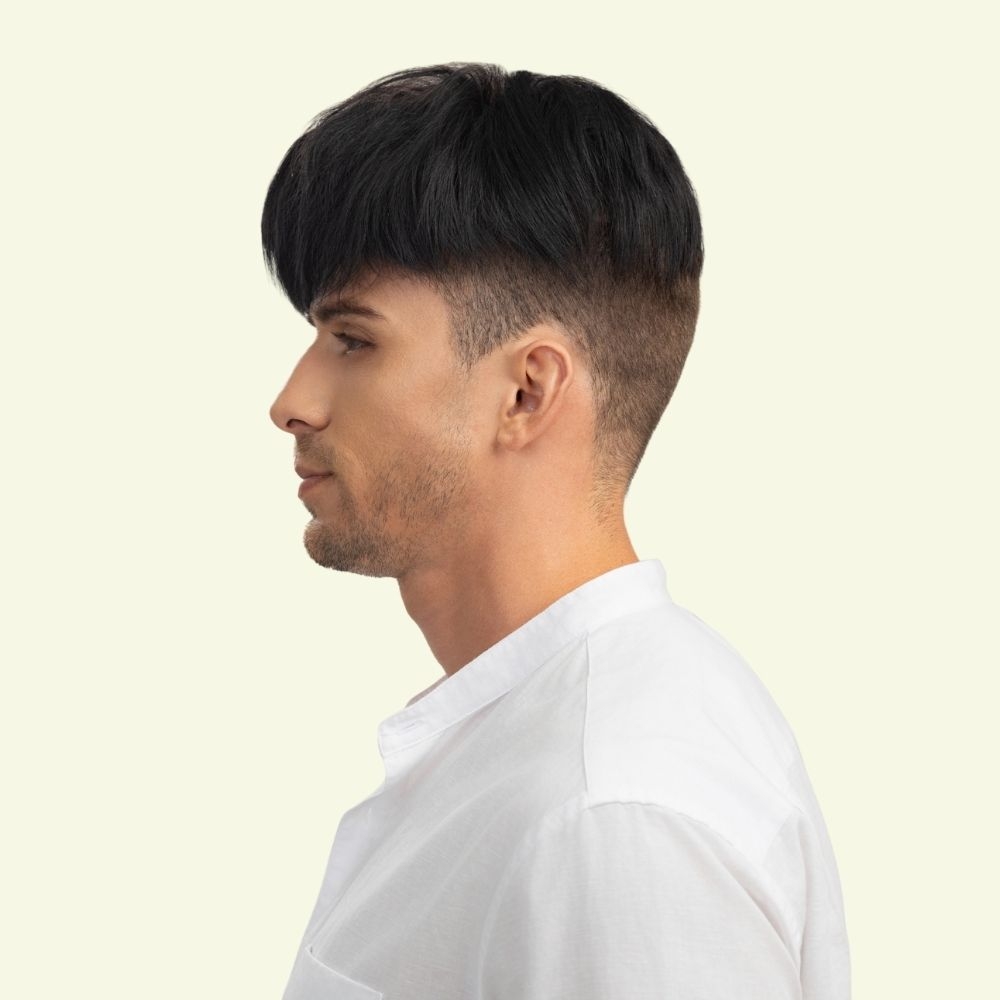 | Wigs Name | Men’s Top Hair System – Layered Style with Side-Swept Bangs, Dark Brown |