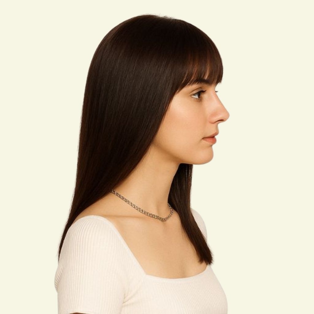 | Wigs Name | Women’s Hair Topper – 3D Ultra-Thin Skin, Wispy Bangs, 35cm |