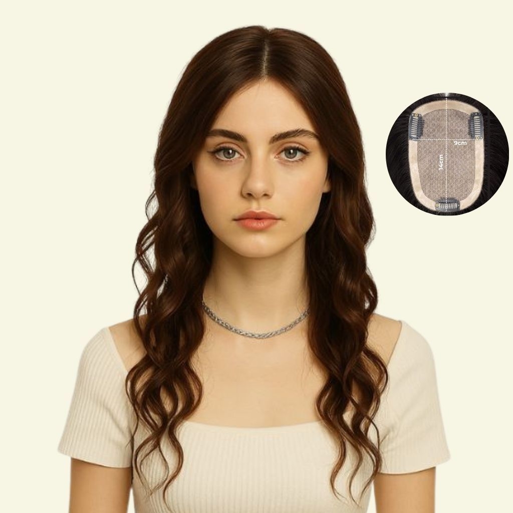 | Wigs Name | Women’s Top Hairpiece – 3D Ultra-Thin Skin, Curly, Two Bangs, 50cm |