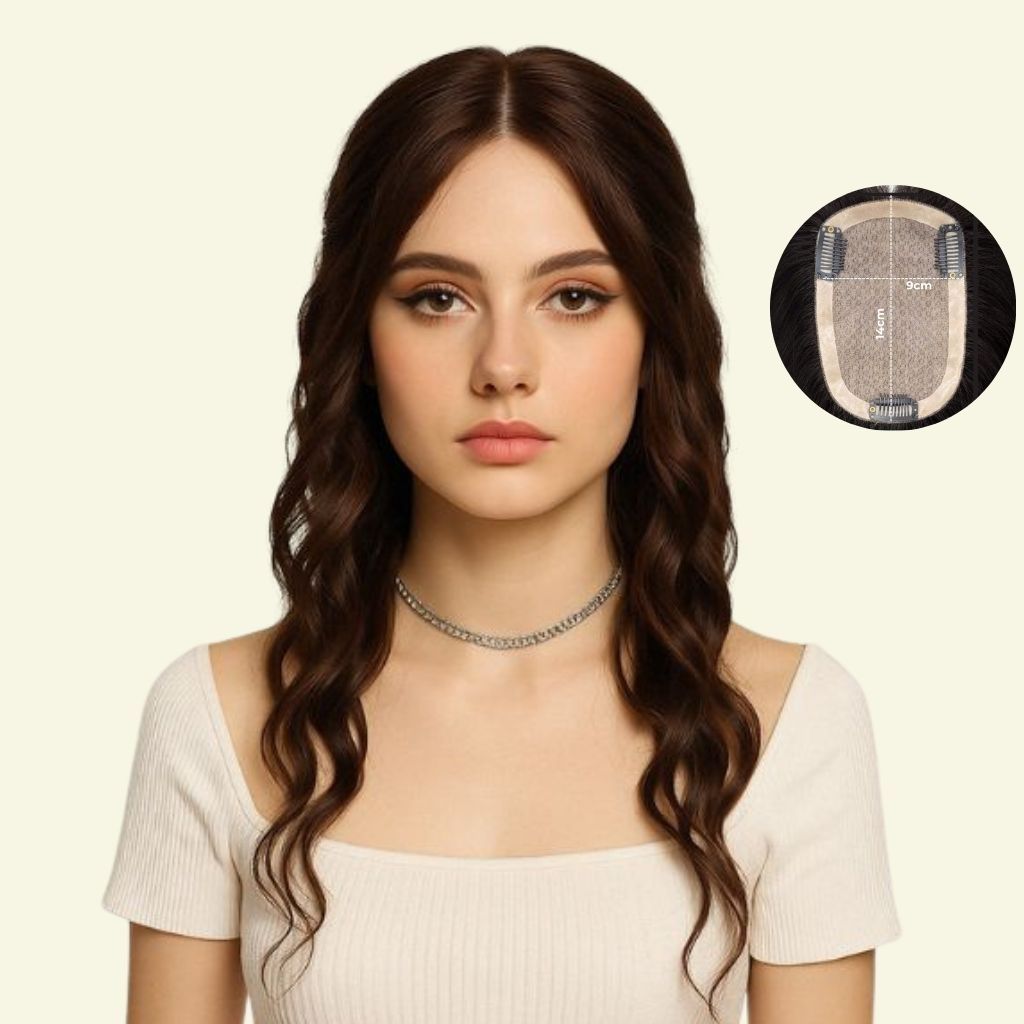 107006. Women’s Top Hairpiece – 4D Ultra-Thin Skin, Curly, Two Bangs, 50cm