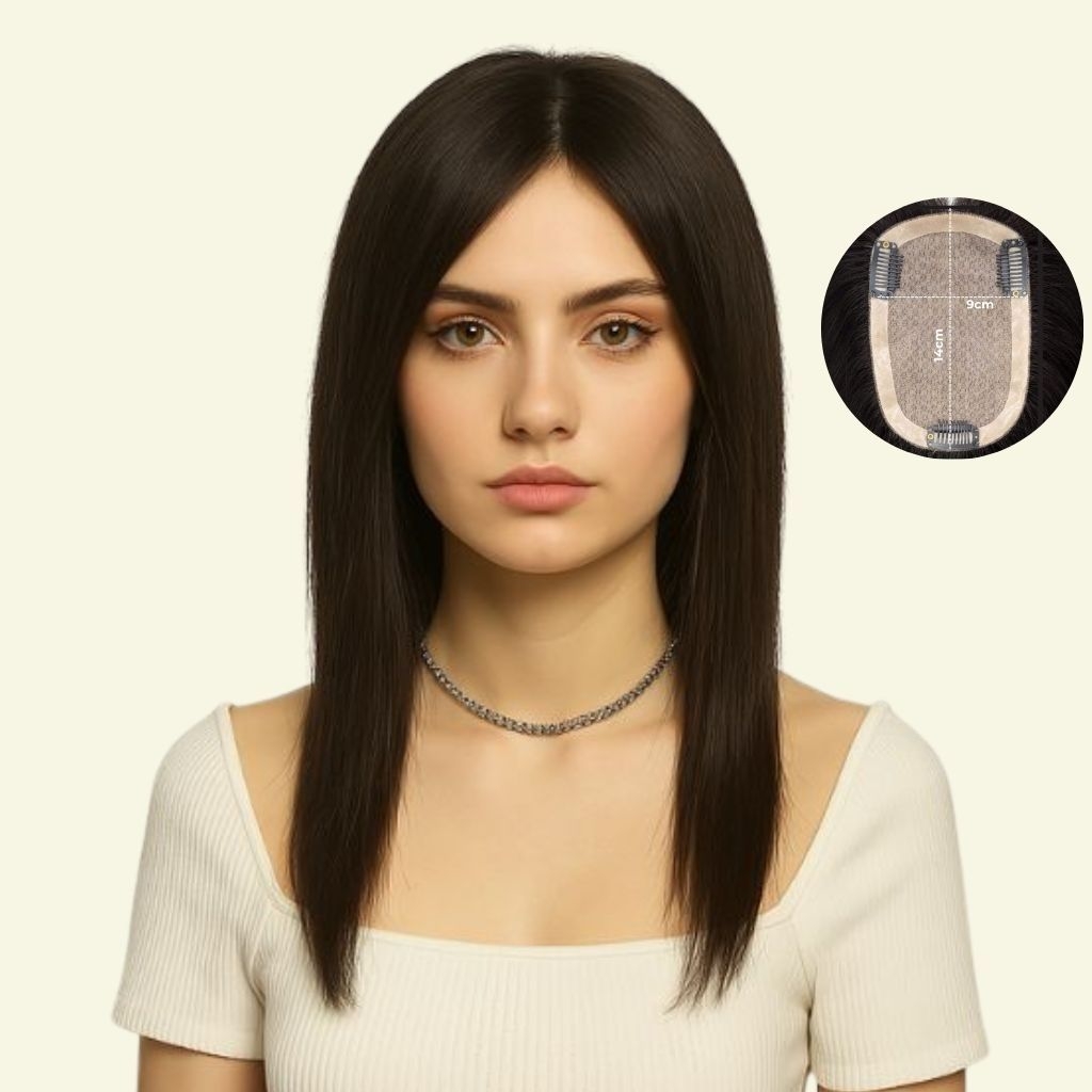 Women’s Top Hairpiece – 3D Ultra-Thin Skin, Two Bangs, Length 30–35cm Women’s Top Hairpiece – 3D Ultra-Thin Skin, Two Bangs, Length 30–35cm