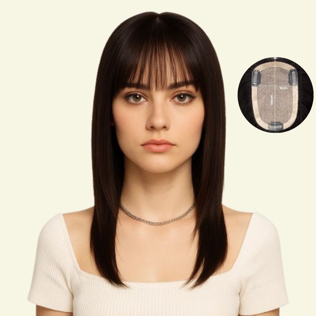 Women’s Top Hairpiece – 3D Ultra-Thin Skin, Two Bangs, Length 30–35cm Women’s Top Hairpiece – 3D Ultra-Thin Skin, Two Bangs, Length 30–35cm